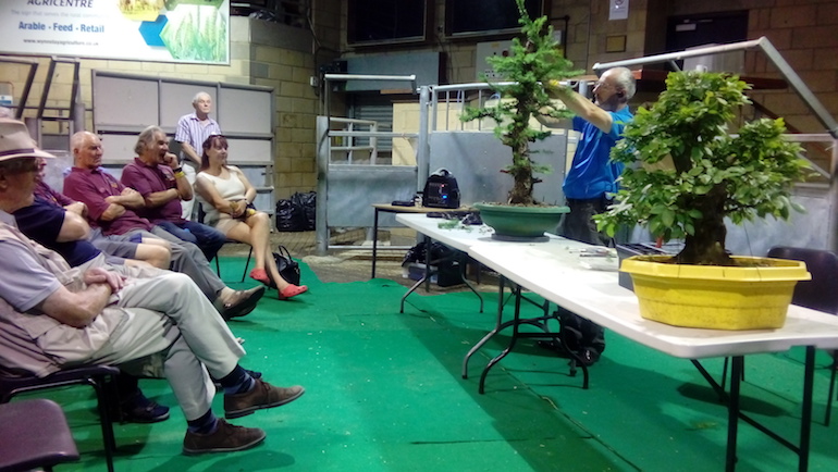 Today Salisbury Bonsai Club celebrated 30 years of bonsai with friends and fellow bonsai enthusiasts and hosted their anniversary show. There were two bonsai styling demonstrations performed by Malcolm Driffield who was able to step in at short notice for both sessions, so thank you Malcolm. Plus an auction run by Chris Thomas, a raffle and some great bonsai displays from Salisbury Bonsai Club and visiting clubs and societies.Â