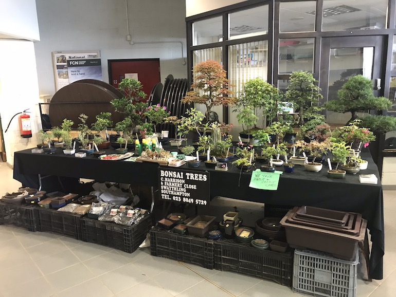 The visiting traders were UK Bonsai Tables, Kin Yau, Collette Harrison, Chris Thomas, David Cheshire, Bon-Tag and Trevor Banbury.