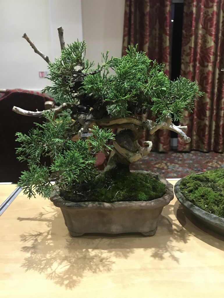 Deadwood on Junipers is very natural and often bleached to mimic nature using lime sulphur. The bark is craggy but use sand paper to get smooth bark and the idea is to create contrast between live and deadwood. Junipers lend themselves to many styles from cascade, semi cascade, clump, raft to informal upright and adapt the tree species to the style. You can also do a wrap around where you literally wrap live saplings round juniper deadwood. It is hard to do and slow to callous well but can carve channels to get convincing image.
