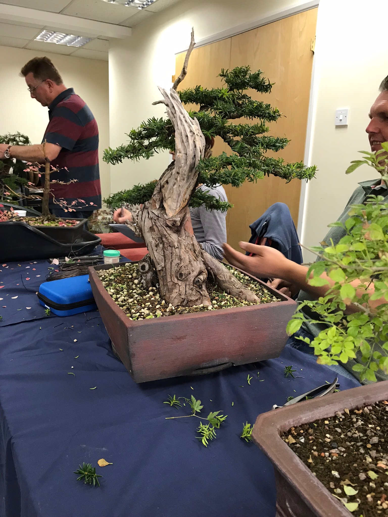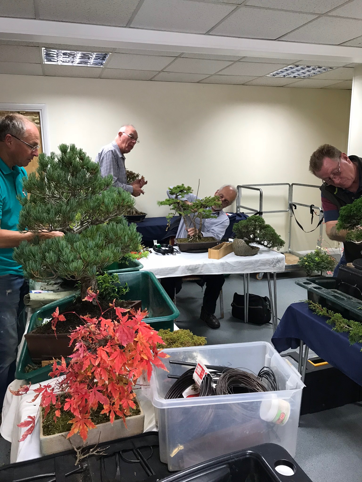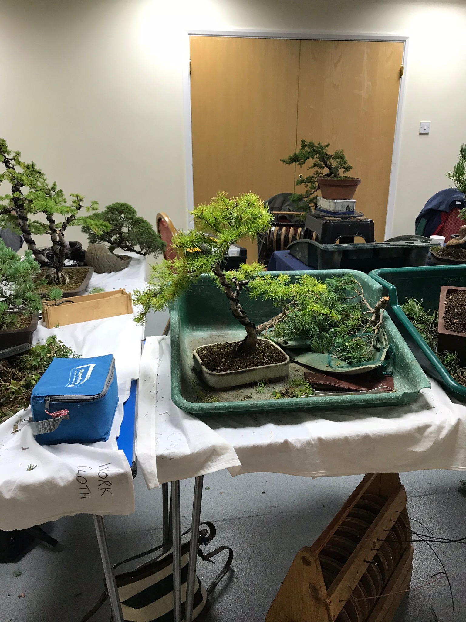 The workshop at swindon with the excellent Lee Verhorevoort Bonsai was well attended , we had twelve members , all with trees of all different, shapes, sizes, that needed expert advice. Some of us were lucky to get away with little or no wiring, some had planned ahead and some not so lucky. We all had a very good time and all the trees looked vastly different, in a good way at the end of the day. Thank you to Mandy for bringing her very tasty cakes along, and Diane for the biscuits.