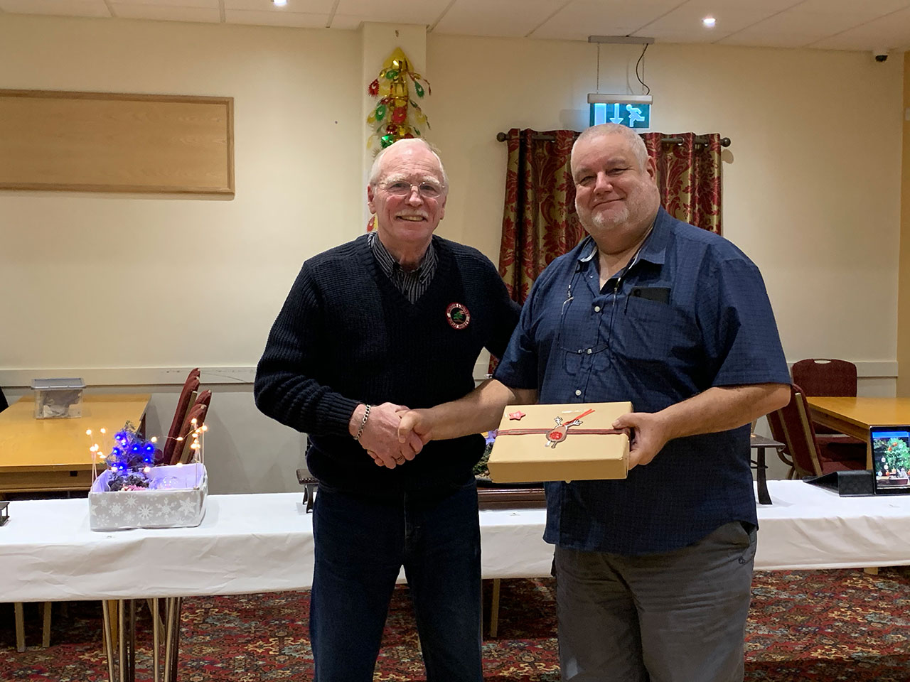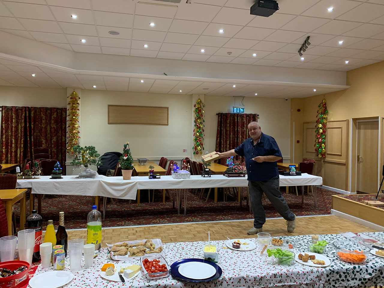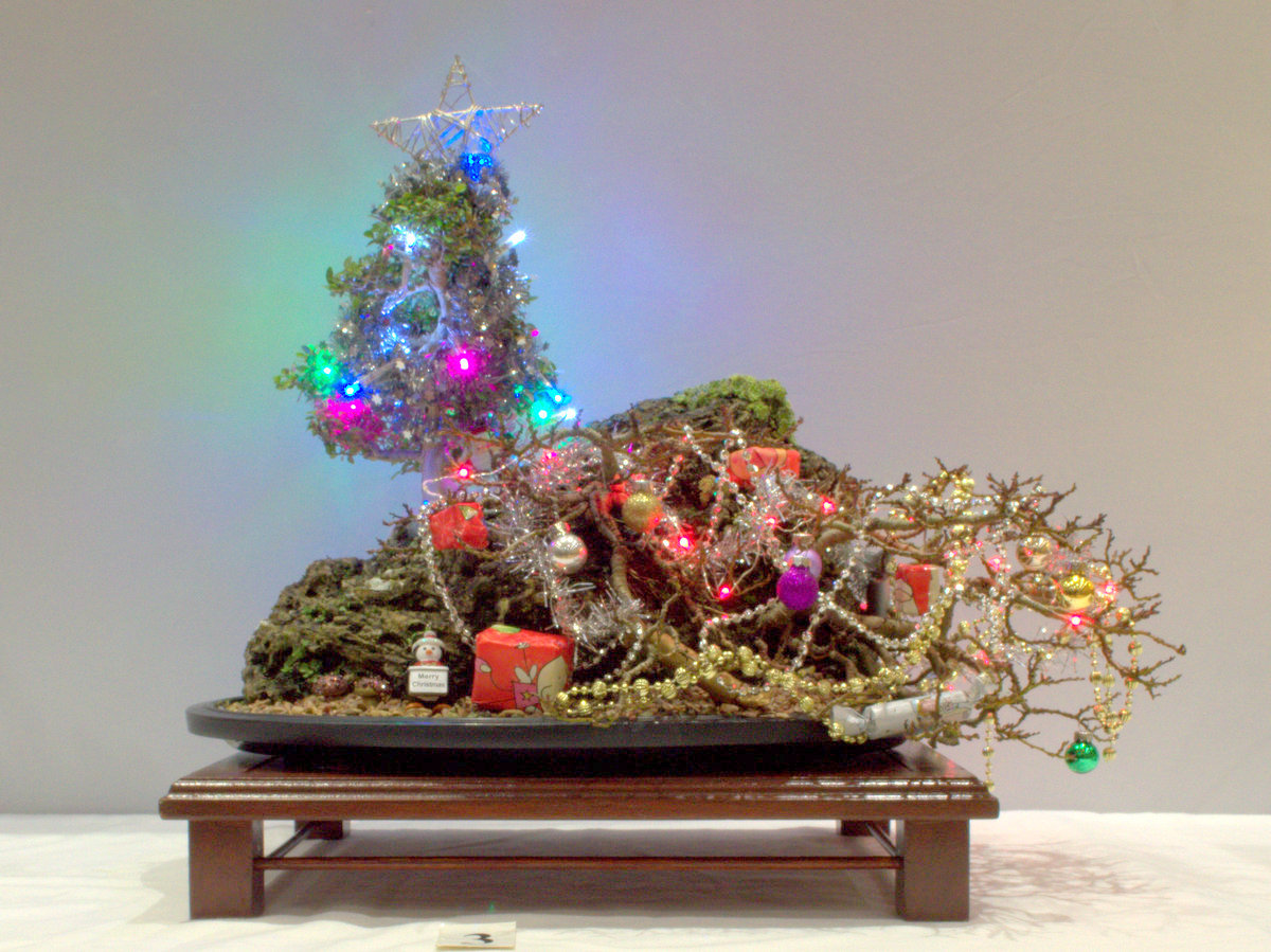 Sally organised a splendid buffet of all sorts of treats and nibbles. There wasn’t much left over. Enough said. Thanks Sally. Other than this we had some games to play and a ‘decorate your bonsai as a Christmas tree’. This was not part of our annual league competition, so just for fun. Doesn’t stop members being competitive though as you can see.