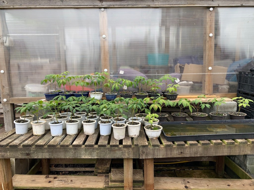 They have continued to develop well and it was interesting to see the genetic diversity / variability of the different forms when the conkers all came from the same parent tree. Some remained quite short and stocky seedlings while others were much more vigorous and had more leggy growth forms.