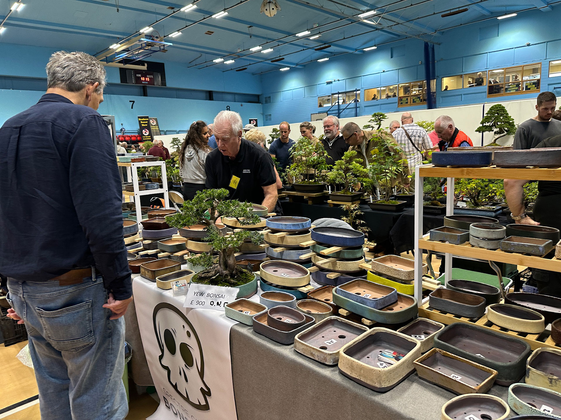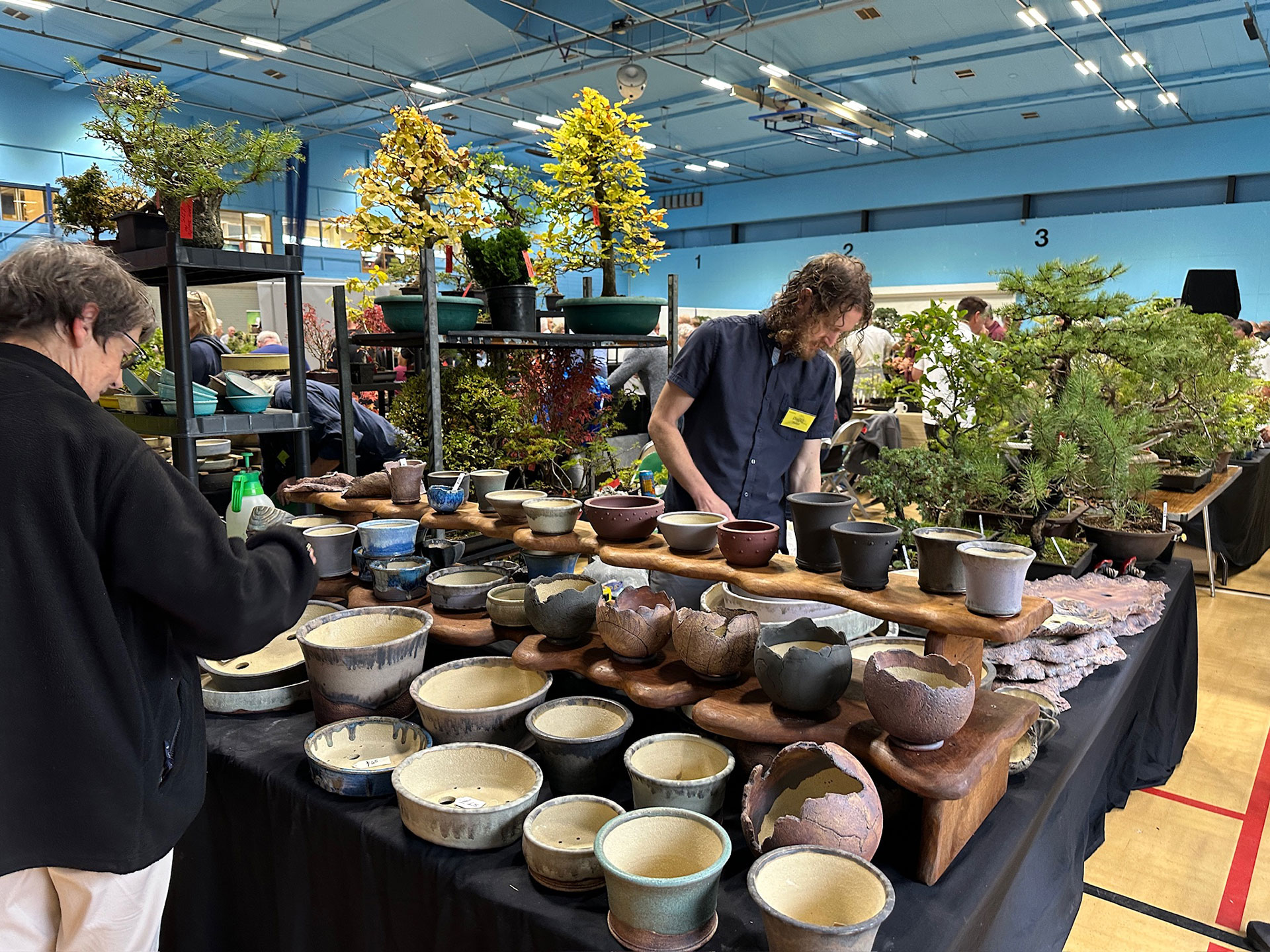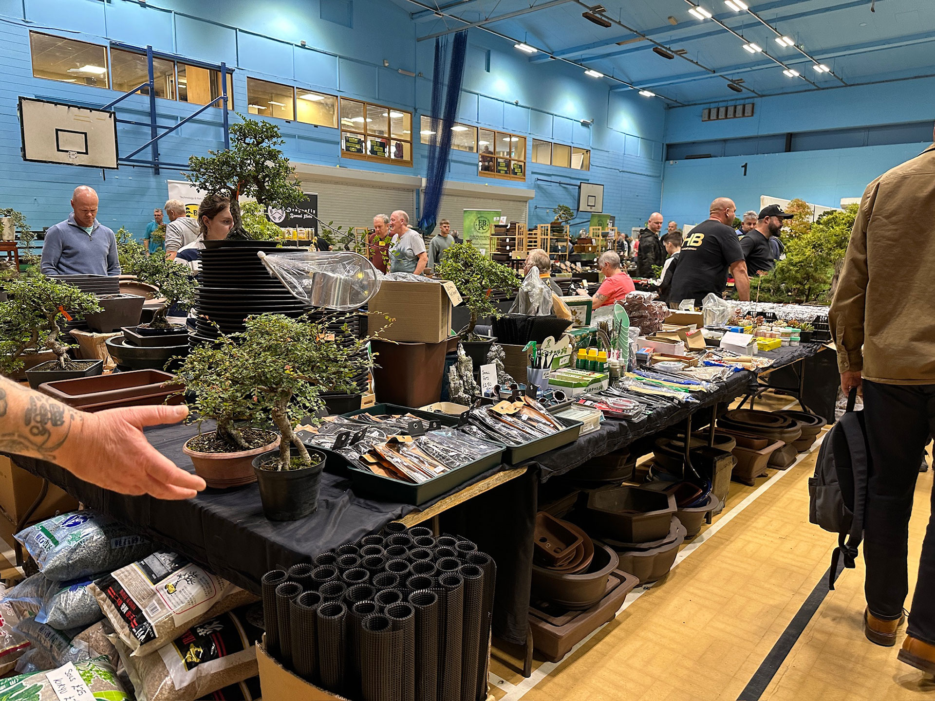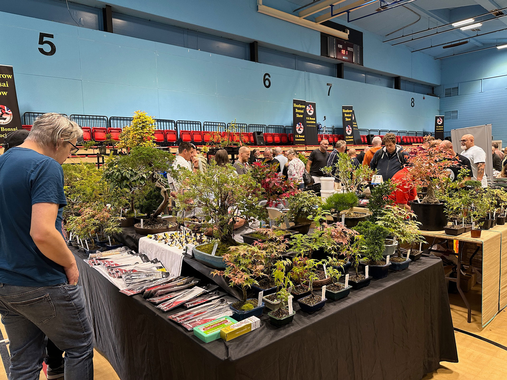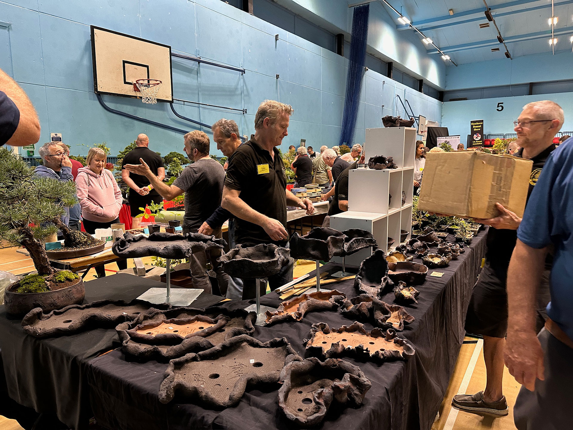 Everything and anything bonsai-related was available for sale at the Heathrow show, and a vast diversity of bonsai traders were present selling bonsai trees of all types from yamadori and starter trees through to well-developed bonsai. There were also bonsai stands, tools, equipment, pots, bronzes, soils, fertilisers and treatments, scrolls, tags and so much more.