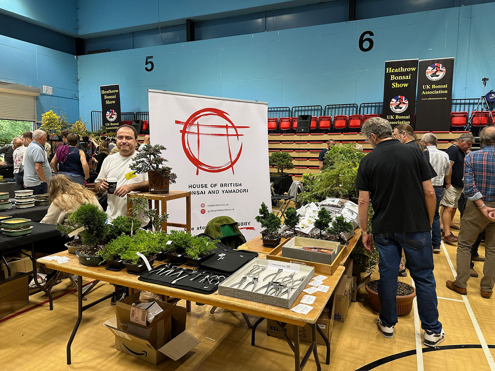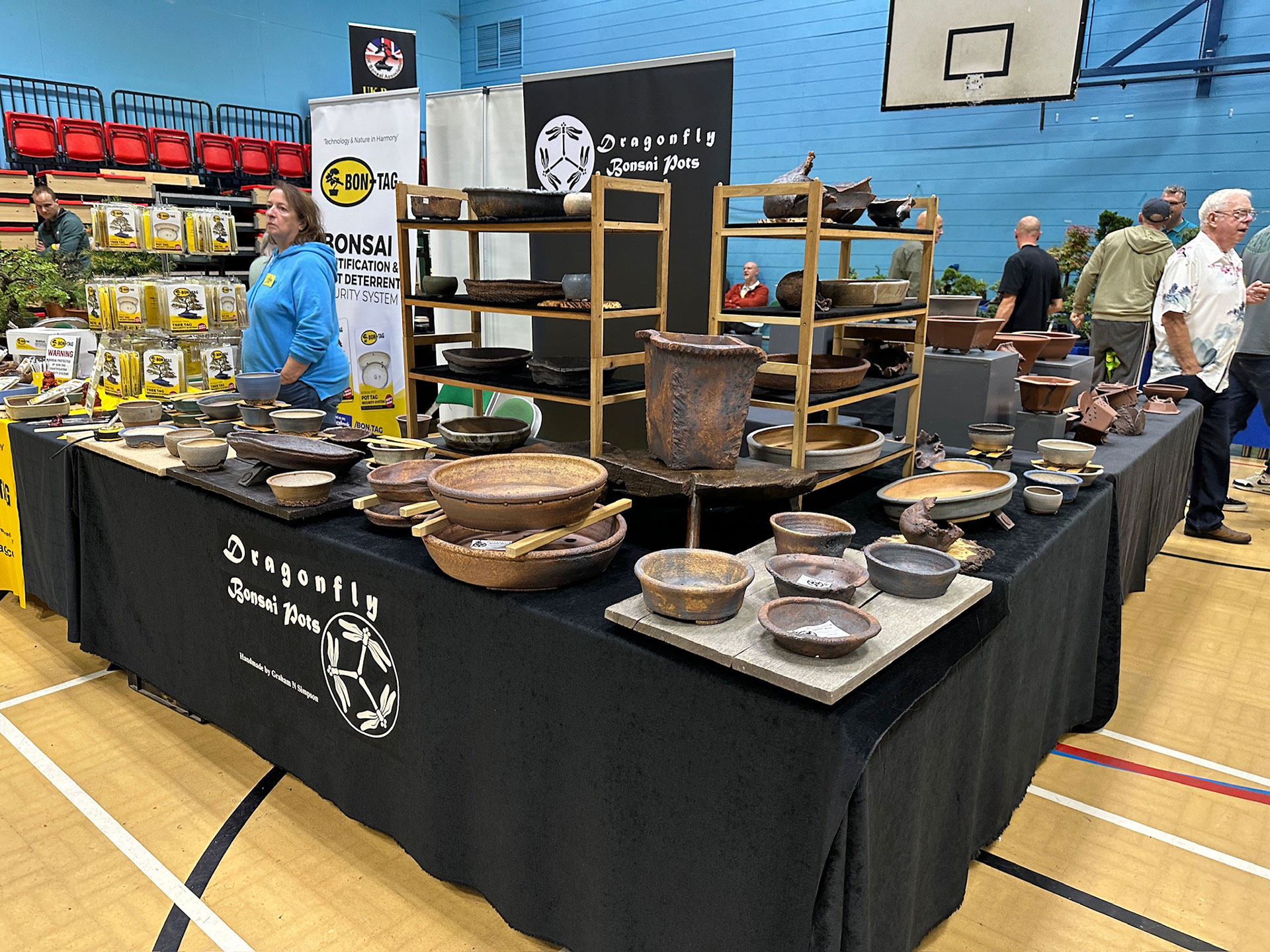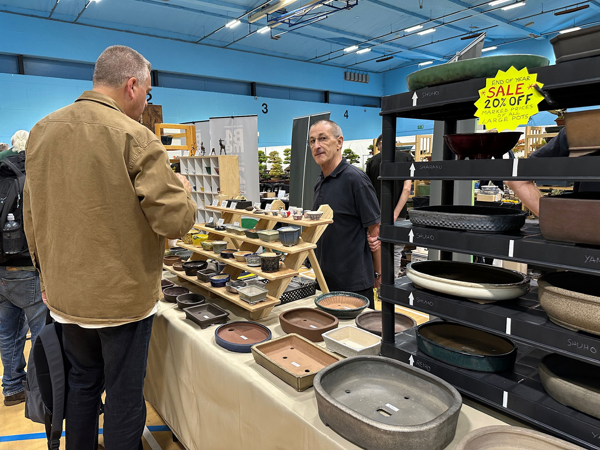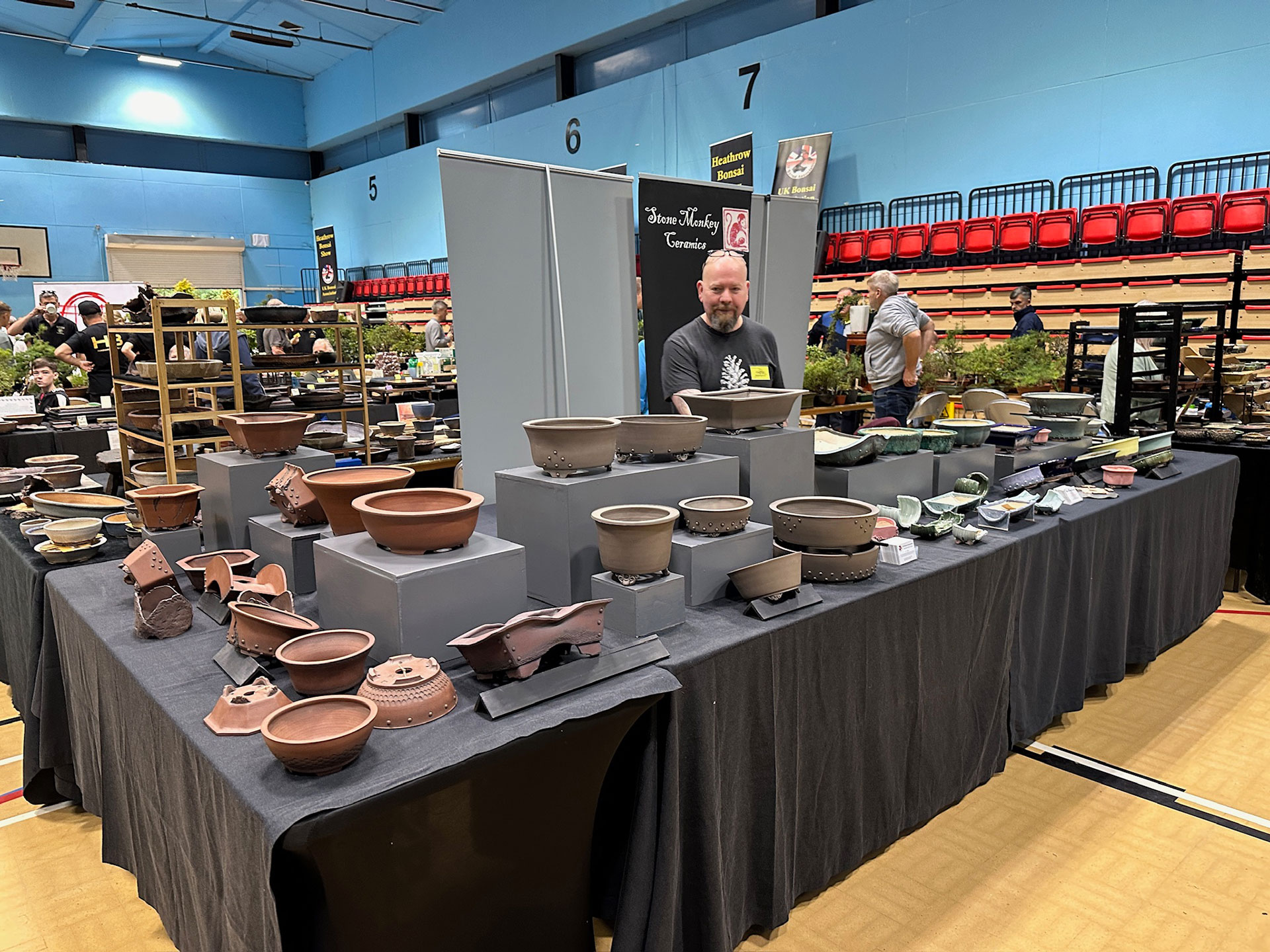 Everything and anything bonsai-related was available for sale at the Heathrow show, and a vast diversity of bonsai traders were present selling bonsai trees of all types from yamadori and starter trees through to well-developed bonsai. There were also bonsai stands, tools, equipment, pots, bronzes, soils, fertilisers and treatments, scrolls, tags and so much more.