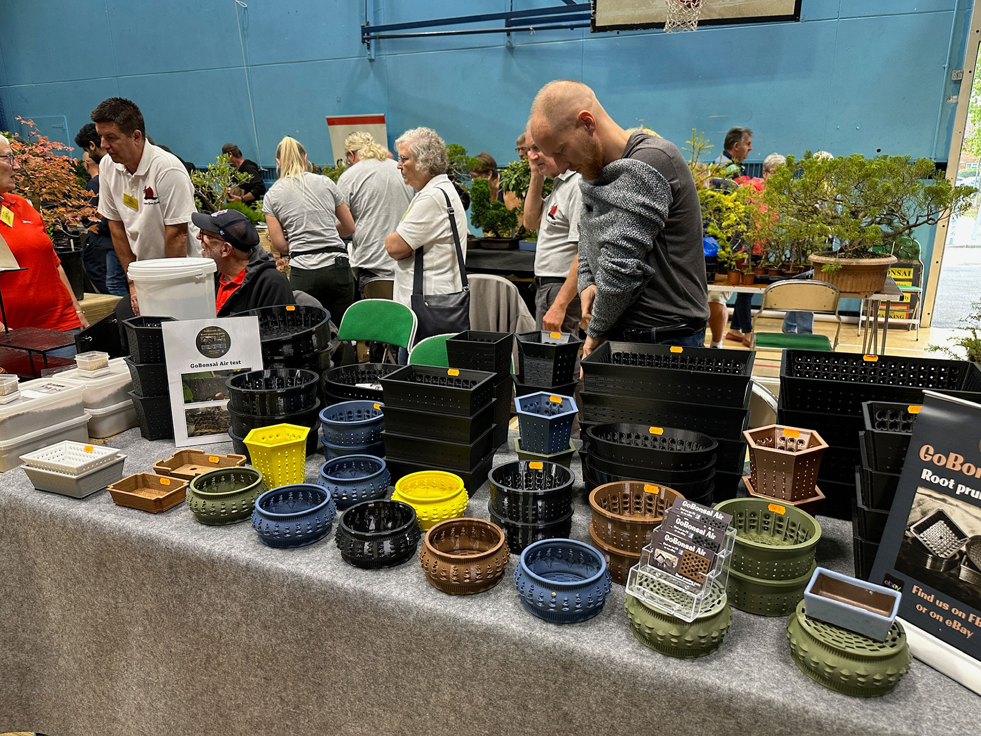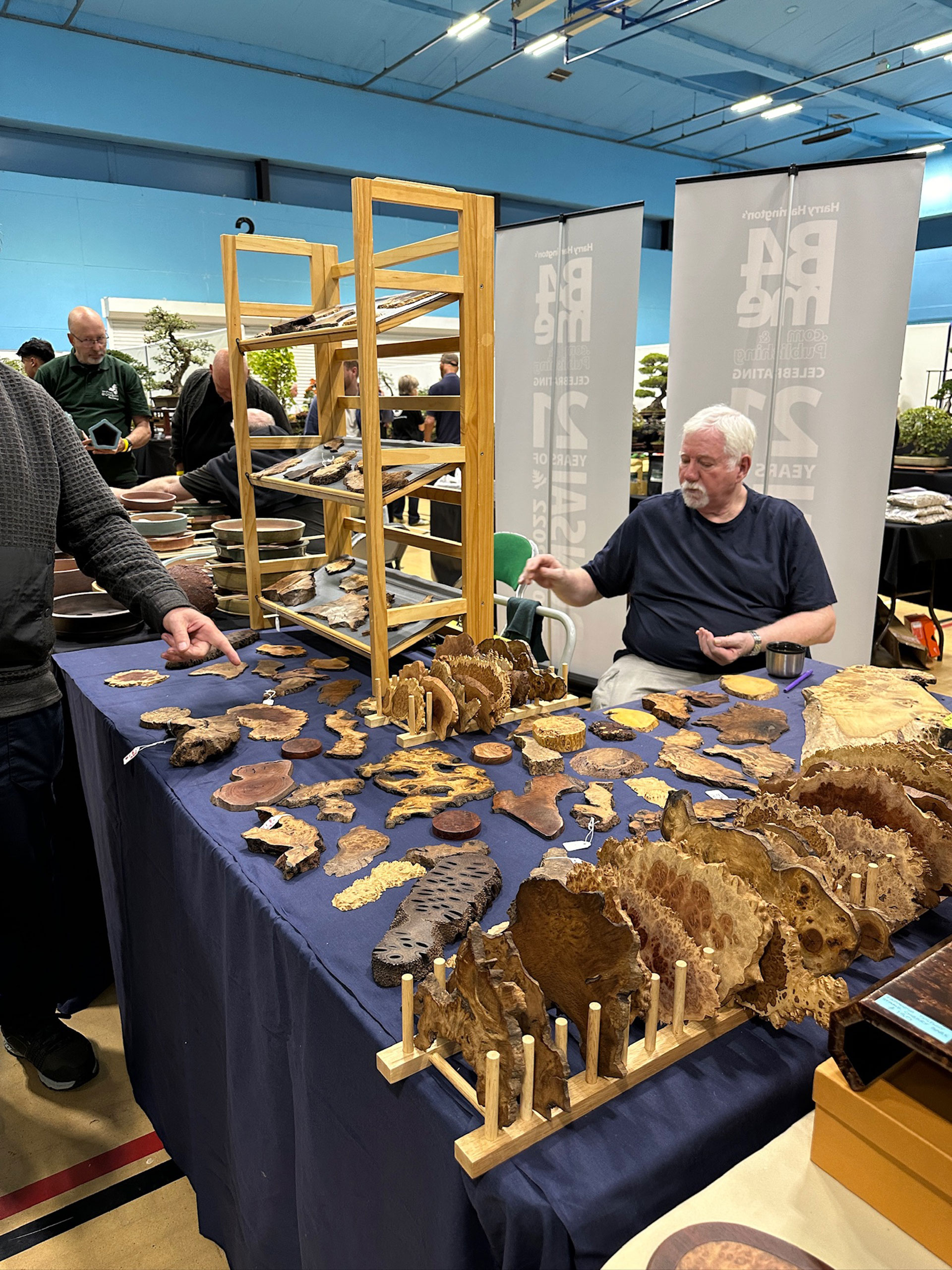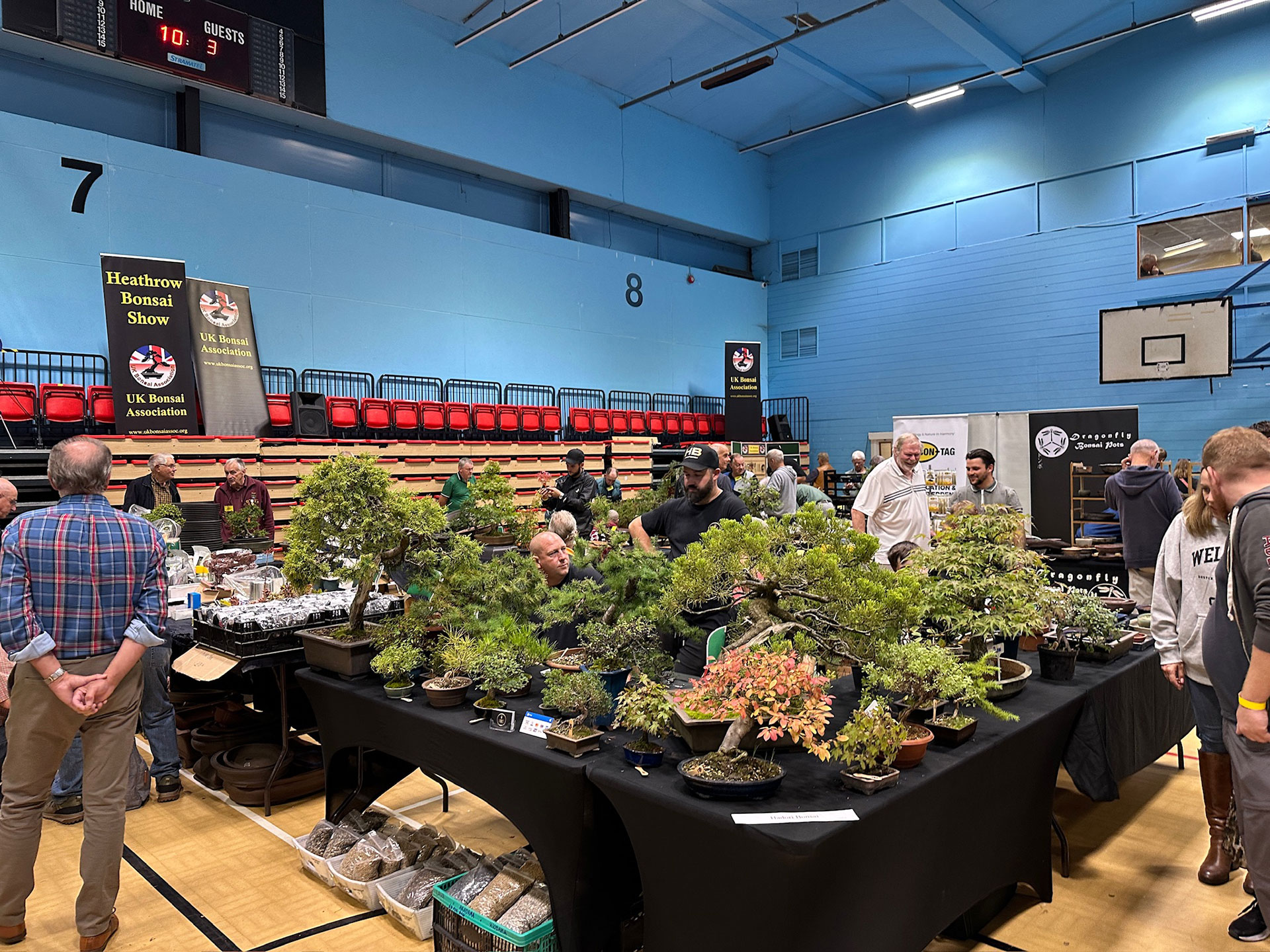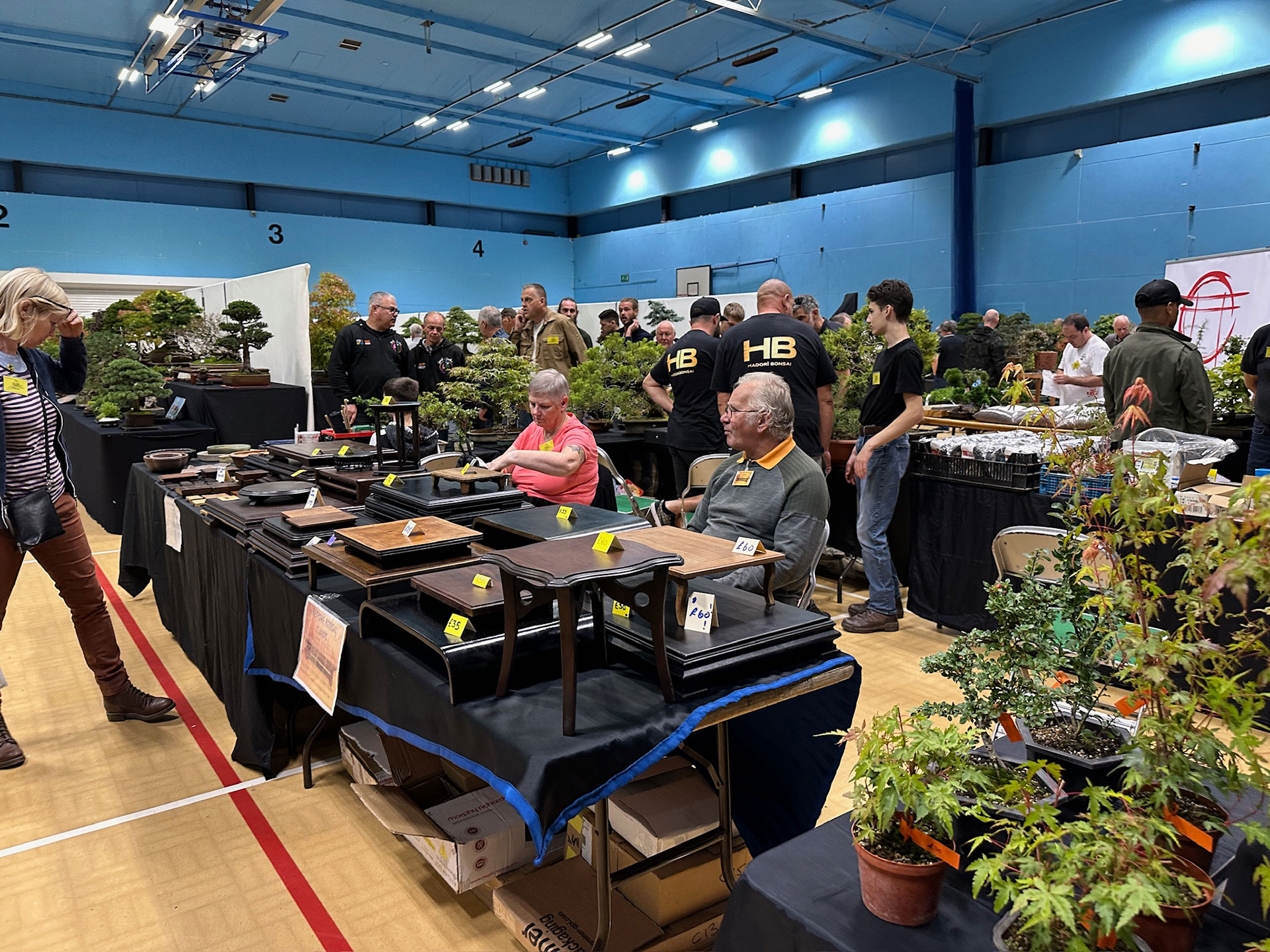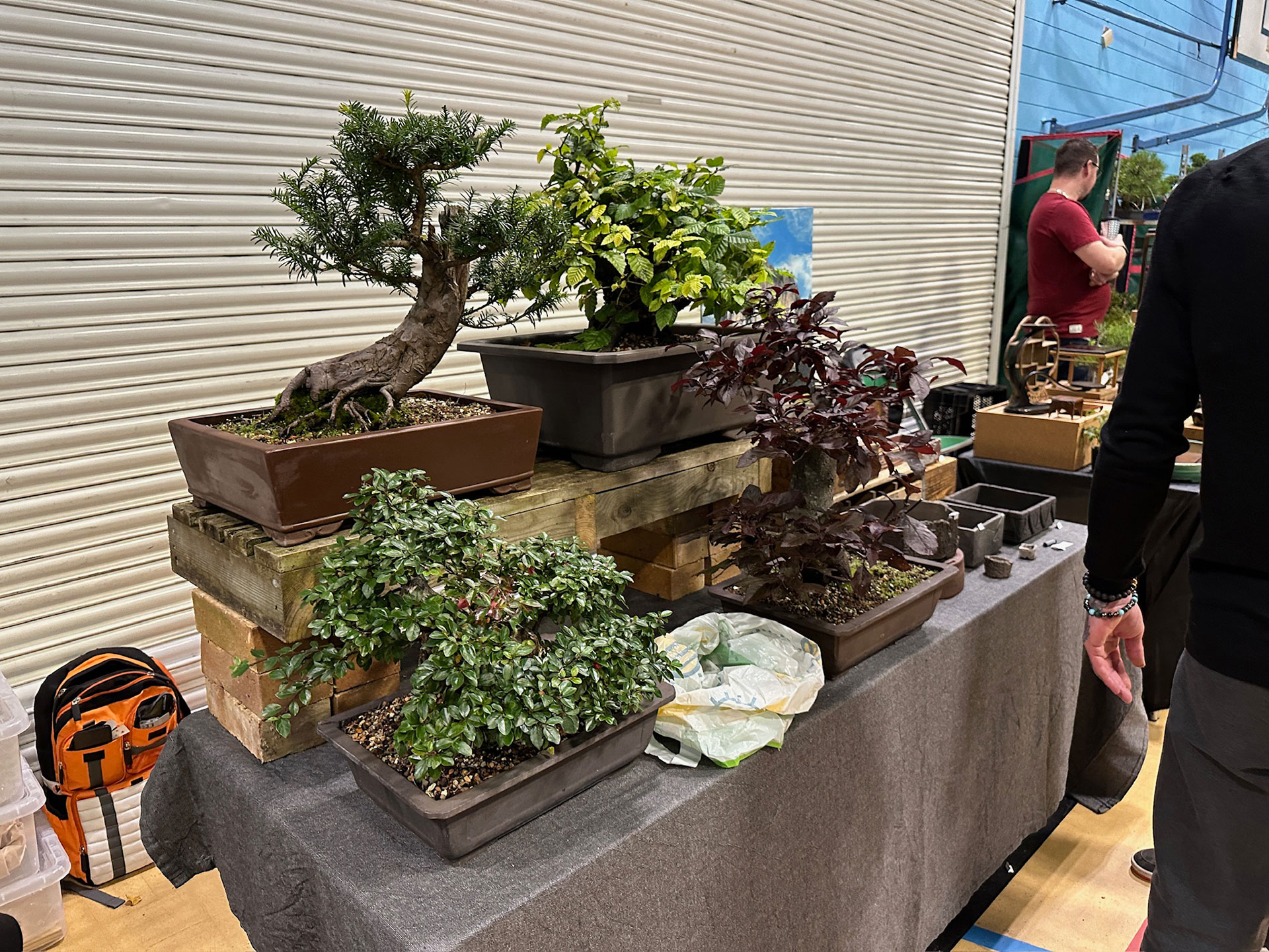 Everything and anything bonsai-related was available for sale at the Heathrow show, and a vast diversity of bonsai traders were present selling bonsai trees of all types from yamadori and starter trees through to well-developed bonsai. There were also bonsai stands, tools, equipment, pots, bronzes, soils, fertilisers and treatments, scrolls, tags and so much more.