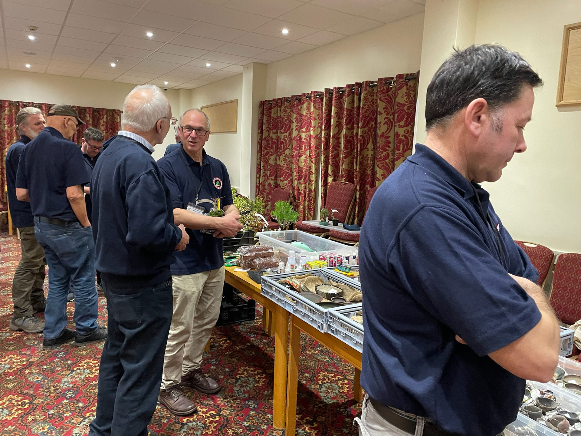 A huge thank you to David Cheshire who visited us from his nursery near Coventry. David kindly added two very nice items for us to also raffle, a cultivar Pinus thunbergii ‘kotobuki’ (Japanese black pine tree) and a Japanese root sickle. He also offered a Christmas sales table offering a shopping opportunity appreciated by all.