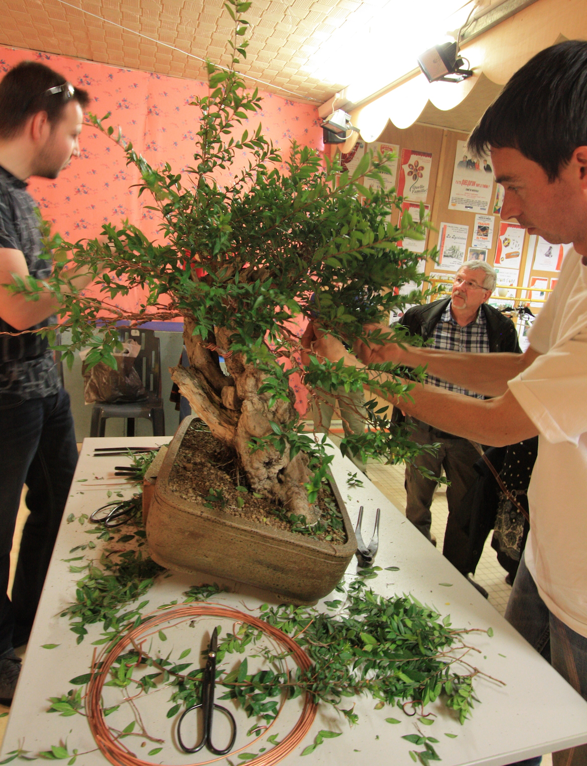 The Myrtle demonstration by Olivier Barreau was excellent and thank you again to Alain Hector the President of Zen Bonsai Club for organising the translation into English by Nicolas Baleux who was also an award winner at the Exposition de Bonsai for his Azalee Satsuki Juko. The focus of the demonstration by Olivier was