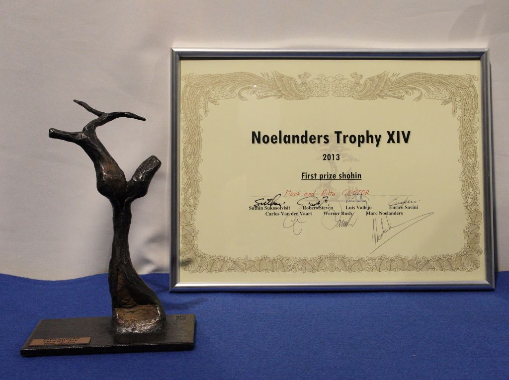 Congratulations to Mark & Ritta Cooper for their success at this year’s Noelanders Bonsai Show. They collected a First prize Shohin Award, a Nomination as well as a BCI Award of Excellence Medal for their six tree shohin composition. Out of one-hundred and eight exhibits, they were the only UK exhibitors to win an award. A well deserved achievement for excellent displays.