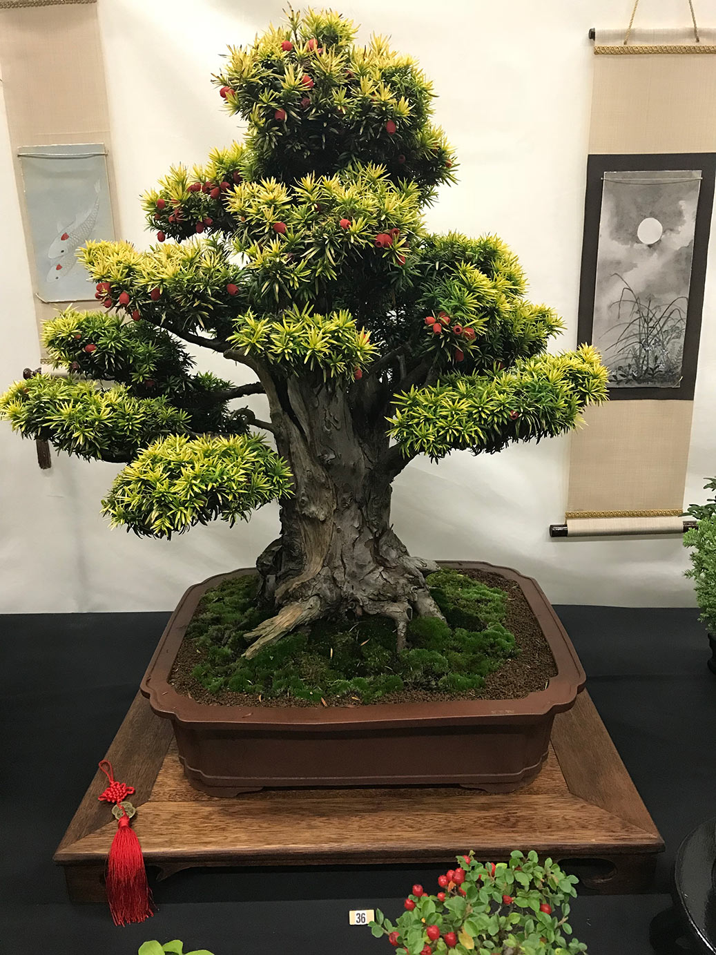 Tree No.36 Yew which came 1st place with the Exhibitors vote owned by Derek Archer of Bury St Edmunds Bonsai Group