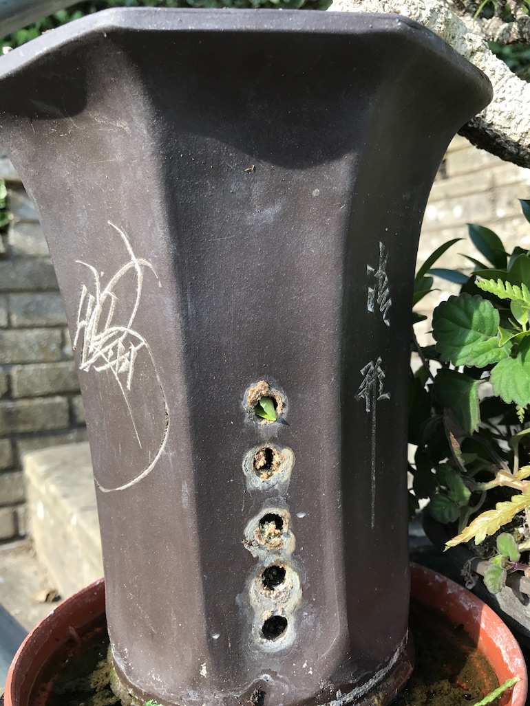 Have you ever seen a leaf cutter bee in action? Well if not check out this video of one who has set up home in a bonsai pot.